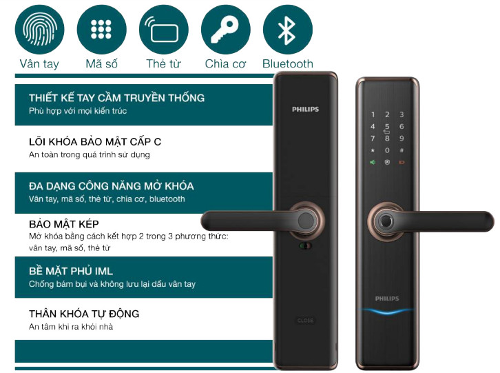 Tính năng mở khóa cửa PHILIPS 7300 bảo mật cao, an toàn cho ngôi nhà