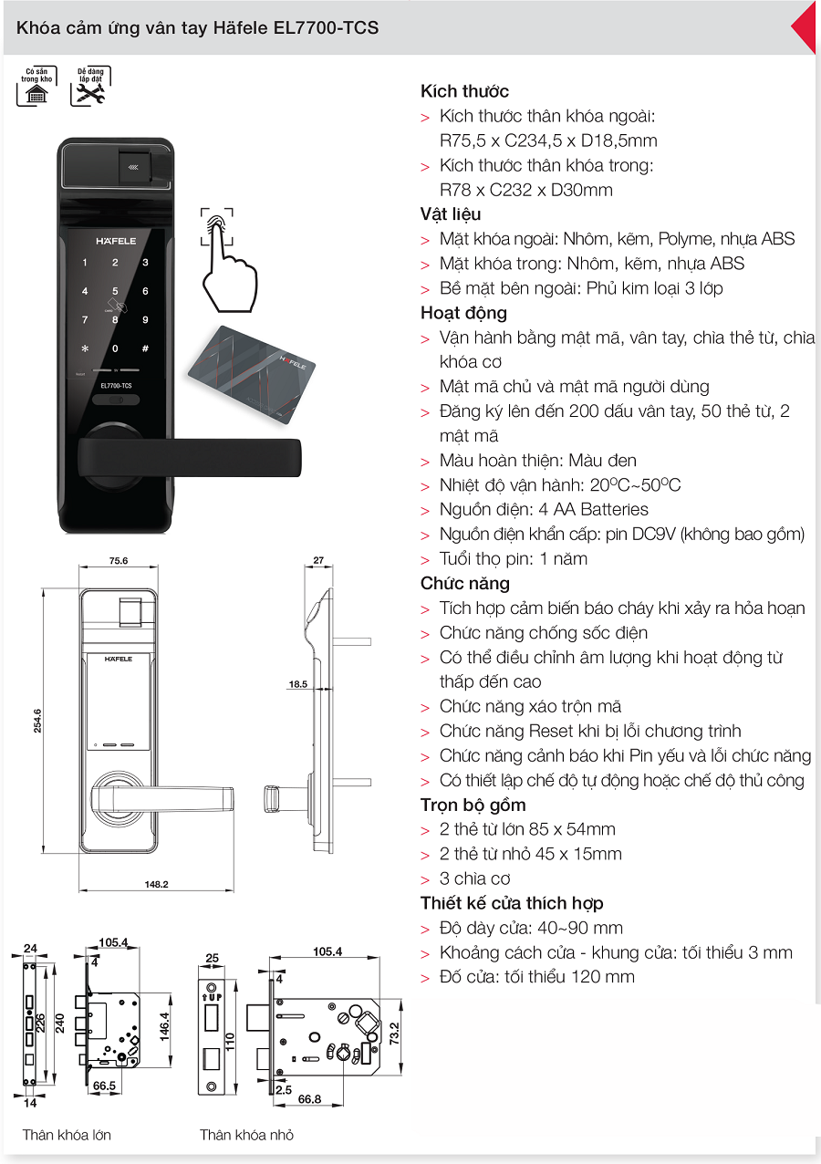 - Được trang bị chìa khóa cơ cho các trường hợp khẩn cấp.