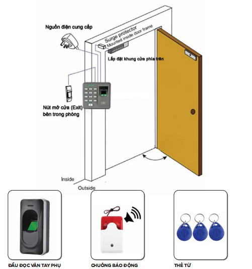 Ngoài chức năng chấm công và kiểm soát người ra vào, máy còn tích hợp nhiều tính năng khác như kết nối chuông, báo giờ, loa,... tạo ra một hệ thống hoàn chỉnh.