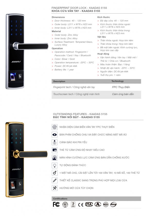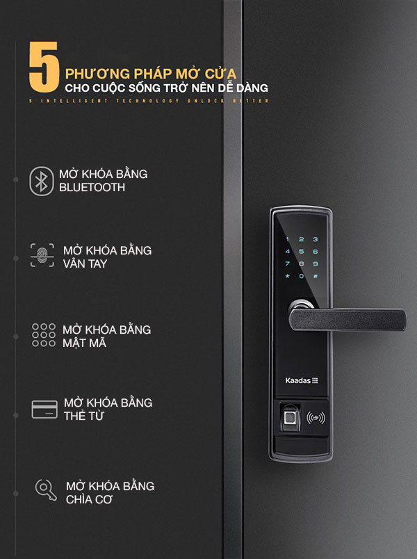 Phương thức mở cửa: Vân tay, Mật mã, Thẻ từ, Chìa cơ