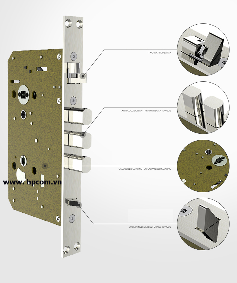 Kiểu mở khóa: Vân tay, Mã số, Thẻ từ, Chìa khóa cơ