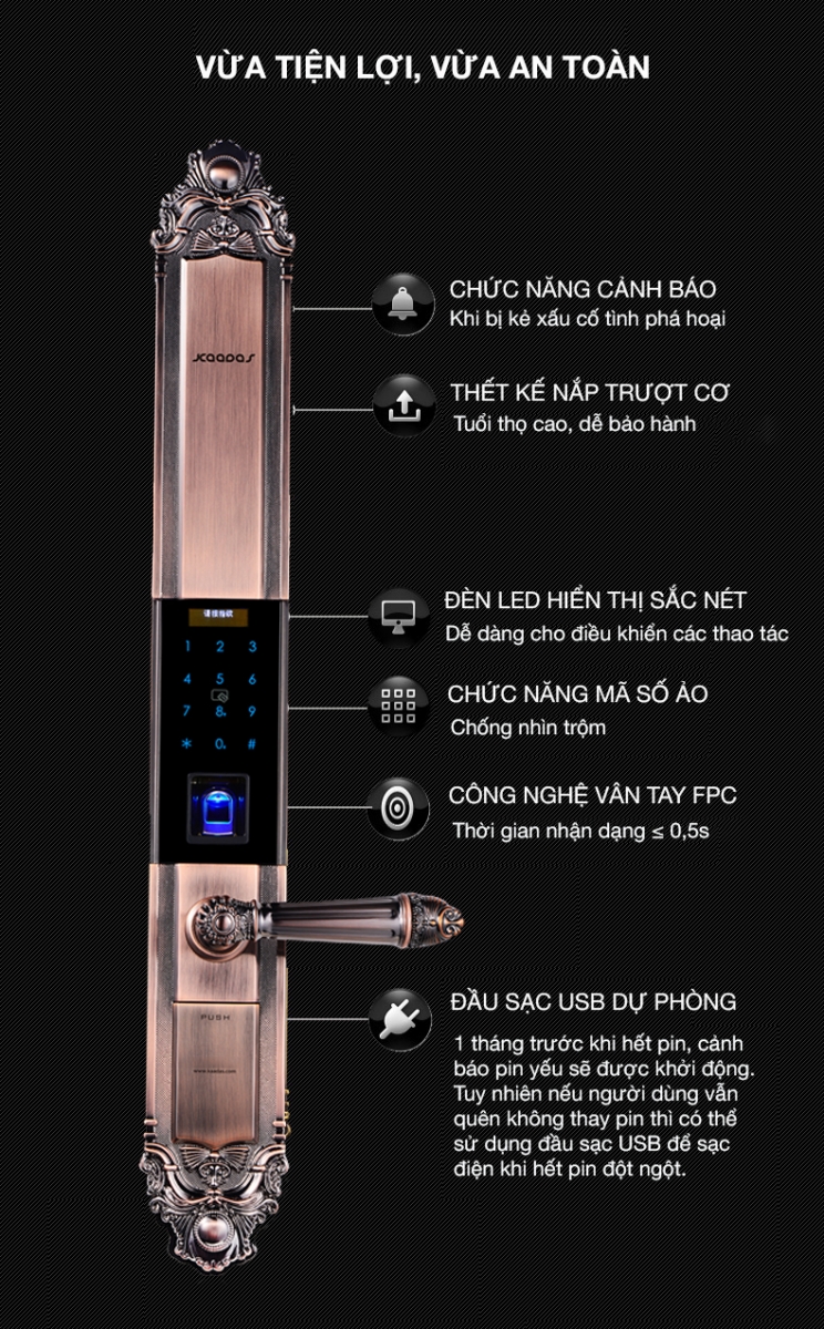 3. Chế độ khóa tự động 4. Báo pin yếu / báo động giả mạo