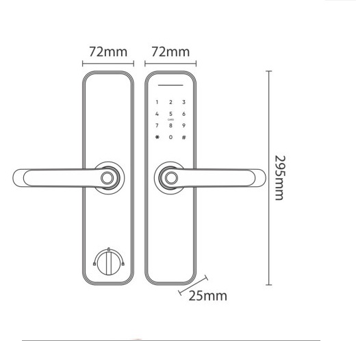 + Kích thước thân khóa ngoài: R72 x C295 x D25mm