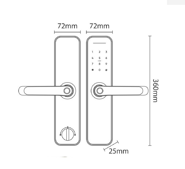 + Kích thước thân khóa ngoài: R72 x C360 x D25mm