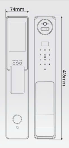 + Kích thước thân khóa ngoài: R74 x C416 x D54mm