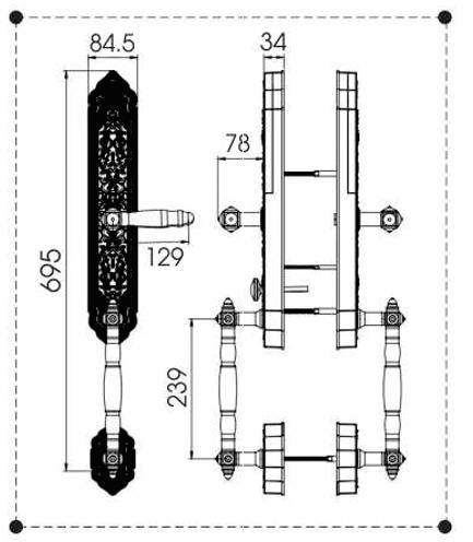 + Kích thước thân khóa ngoài: R84,5 x C710 x D40 mm