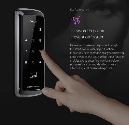 Để mở cửa bằng mã số, Khóa thẻ từ, mã số UN-325S không lưu lại dấu tay trên bề mặt màn hình cảm ứng hoặc khi bạn mở cửa và đang đi cùng người lạ. Giúp bảo vệ mật khẩu của bạn tốt hơn.