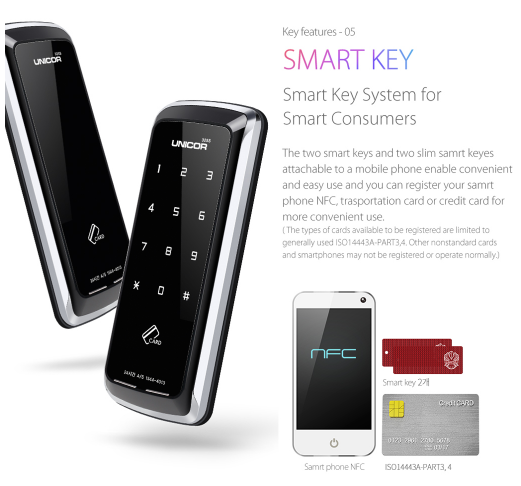 Mở khóa bằng thẻ từ: khóa có thể đăng kí tối đa 50 thẻ từ ( có 02 thẻ kèm theo khóa )