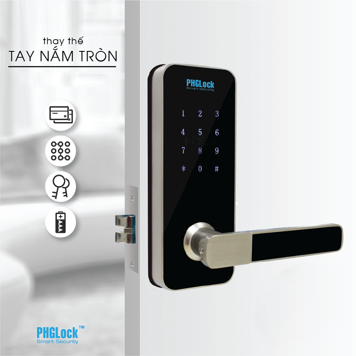 - Cách mở cửa: 99 thẻ Mifare, 9 mã số, có chức năng chống dò mã và chìa khóa cơ trong trường hợp khẩn cấp.
