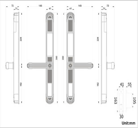 + Kích thước thân khóa ngoài: 410 x 390mm