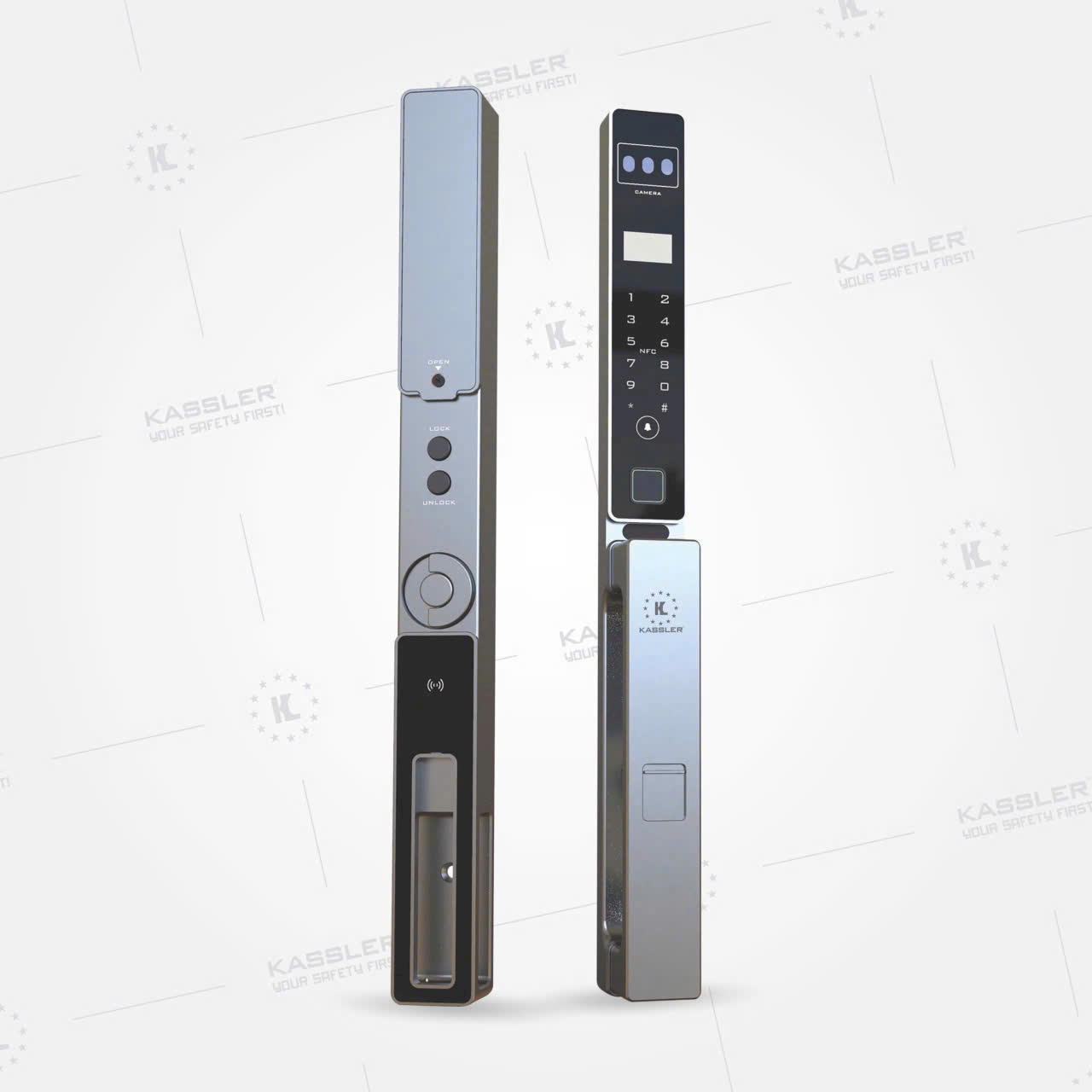 Khóa vân tay Kassler KL-599 CNC 02 GREY APP sử dụng công nghệ khóa vân tay tiên tiến với độ bảo mật cao không thể sao chép. Khóa vân tay Kassler KL-599 CNC 02 GREY APP bạn có thể đăng ký vân tay đến 100 dấu vân tay lần nên nhiều người có thể sử dụng khóa. Với lượng lưu trữ vân tay lớn bạn hoàn toàn có thể lắp đặt khóa vân tay cho gia đình, văn phòng công ty.